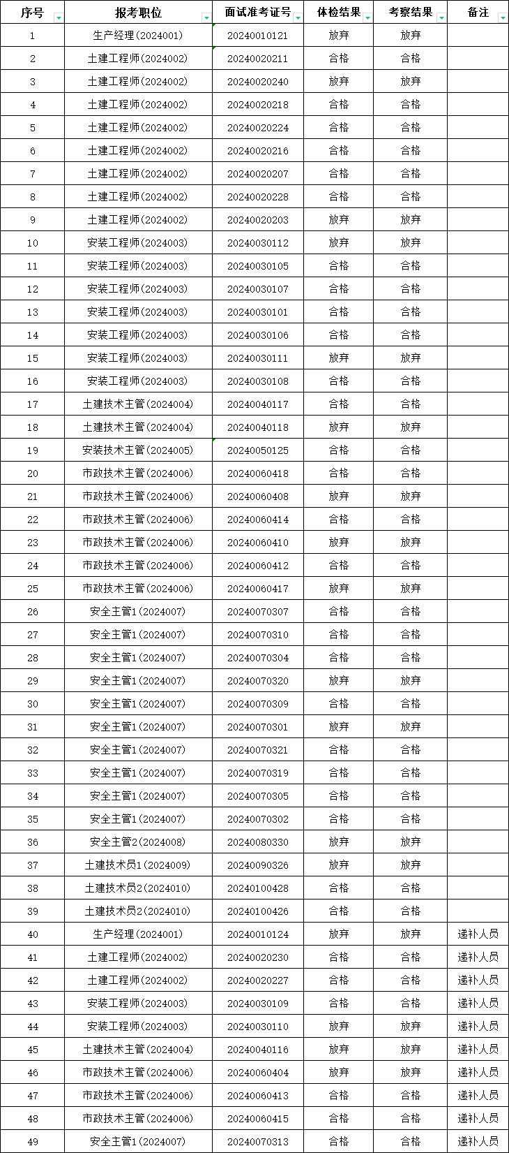 根據(jù)《2024年亳州金地建工有限公司外包人員公開招聘公告》相關(guān)規(guī)定,現(xiàn)將擬入圍對象體檢、考察結(jié)果公示如下: