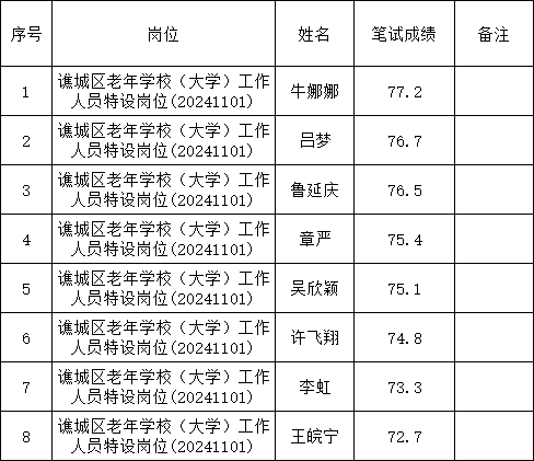 關(guān)于2024年譙城區(qū)老年學(xué)校(大學(xué))工作人員特設(shè)崗位公開招聘擬錄用人員名單公示